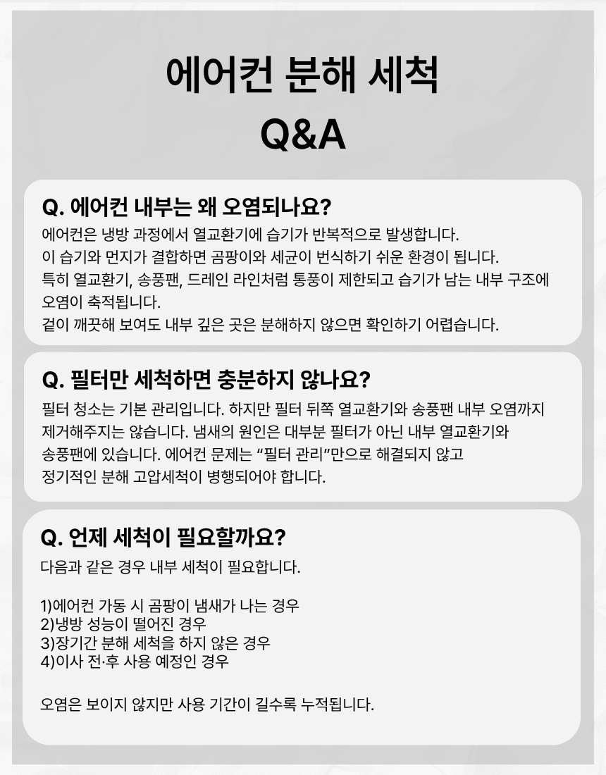 에어컨 종류(벽걸이·스탠드·시스템) 및 모델 구조에 따라 비용이 달라질 수 있습니다.